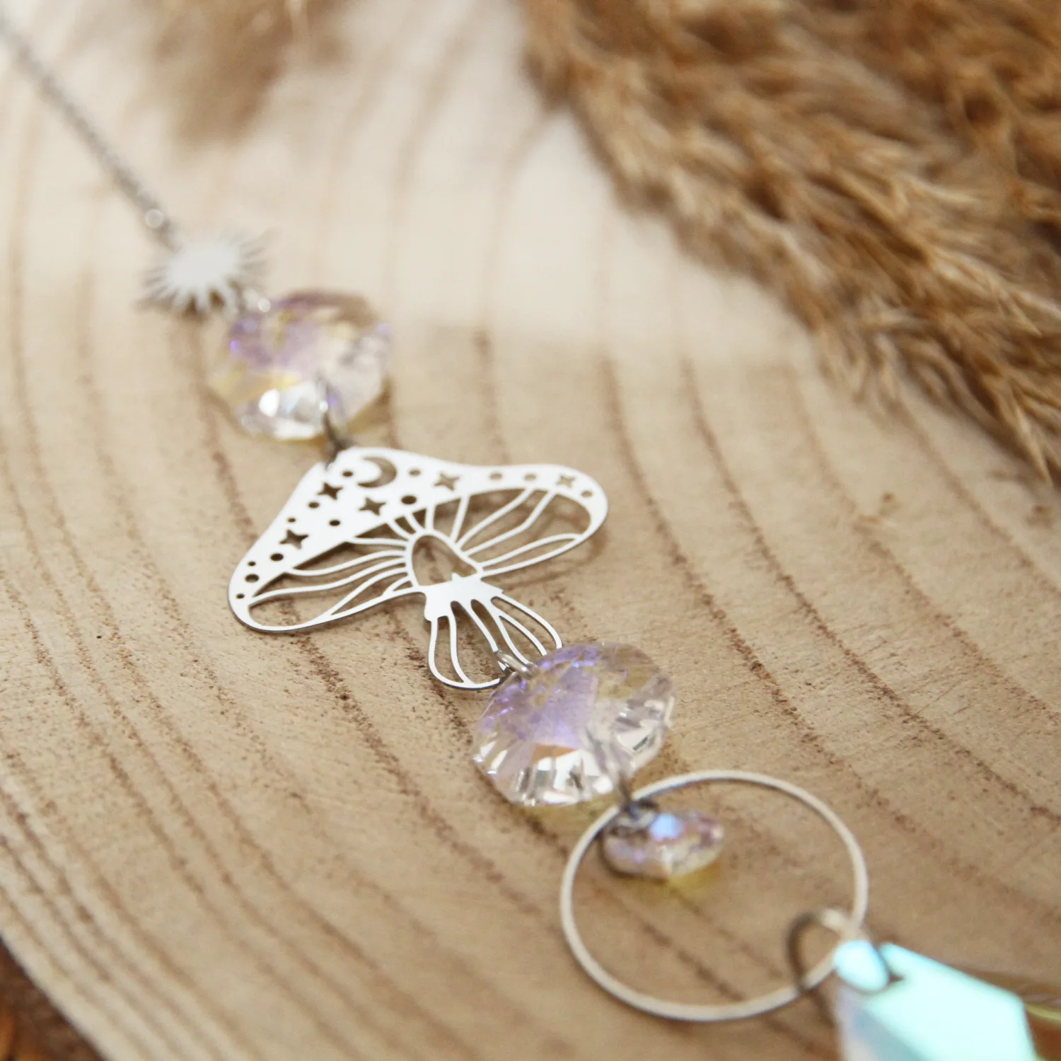 Attrape-soleil « forêt magique » en verre et acier inoxydable, suspendu sur fil nylon tressé. Une décoration lumineuse et durable pour fenêtres, salons ou chambres. Cadeau original qui diffuse éclat et harmonie.